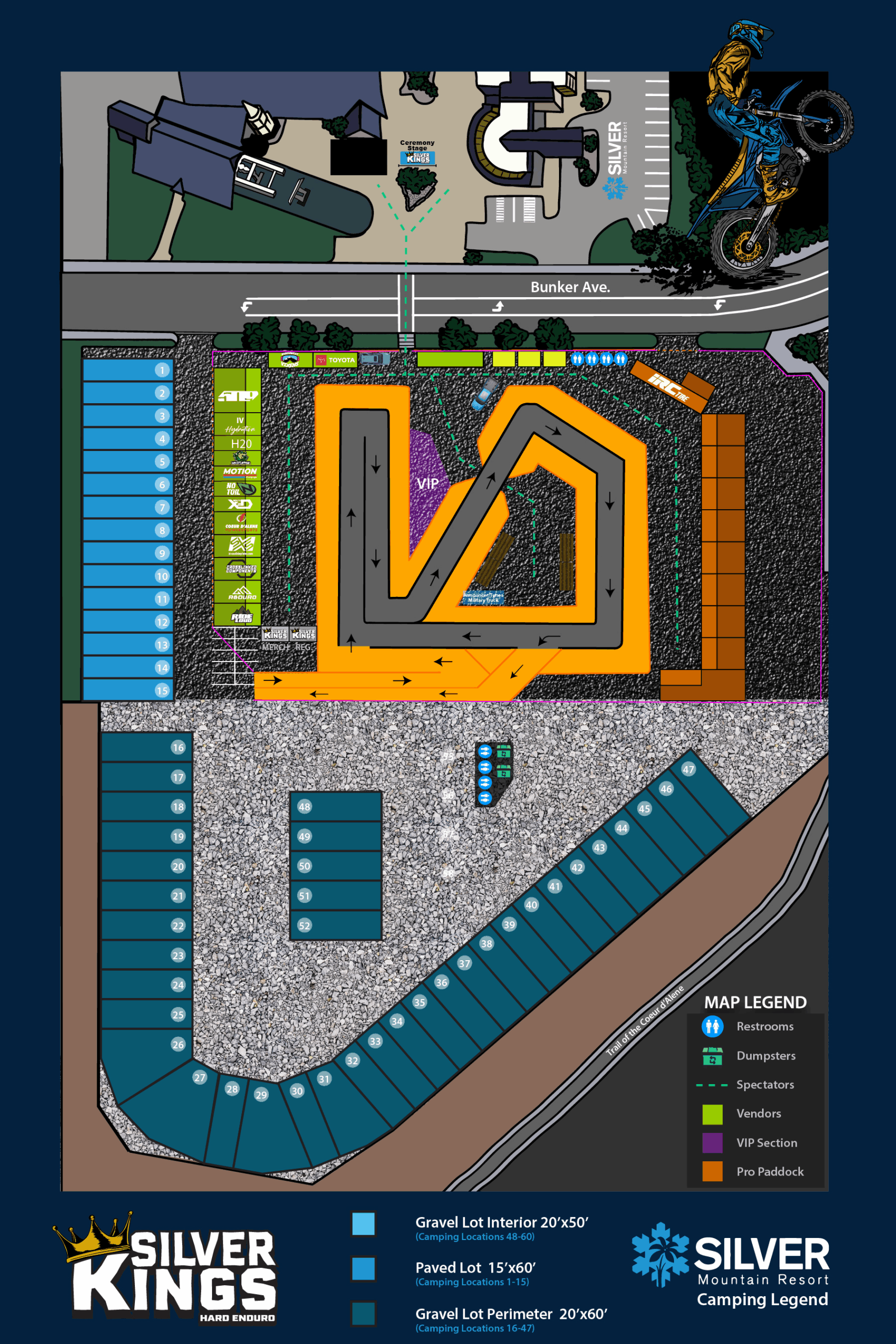 No dogs/pets are allowed on the gondola or mountain at any time during Silver Kings Hard Enduro events.